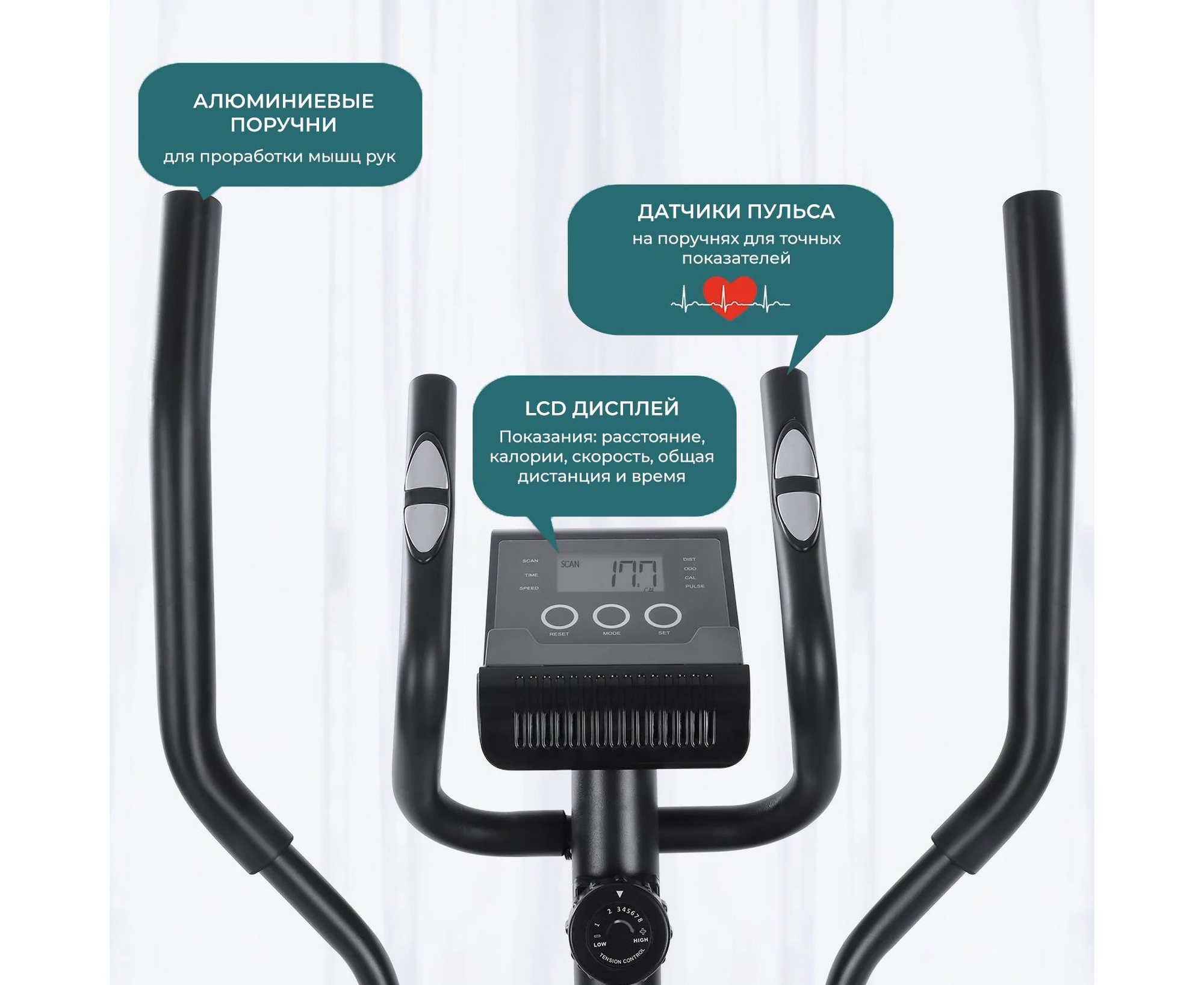 - наличие встроенного кардиодатчика на ручке